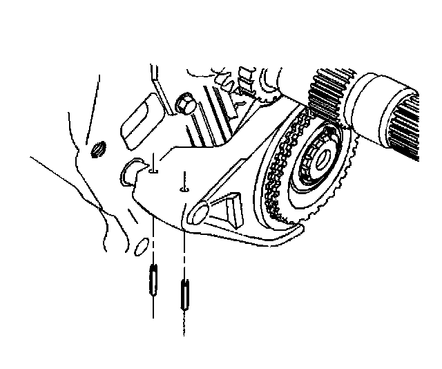 14. Remove the overdrive gear shift fork roll pins.