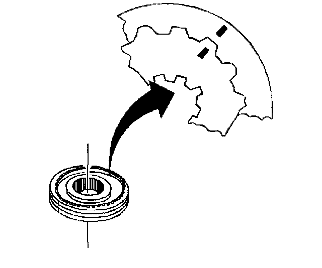 16. Scribe a mark on the overdrive synchronizer hub and synchronizer hub sleeve.