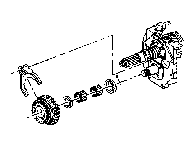 17. Remove the overdrive gear assembly with the shift fork from the countershaft.
