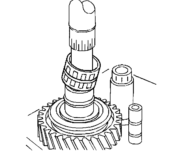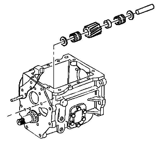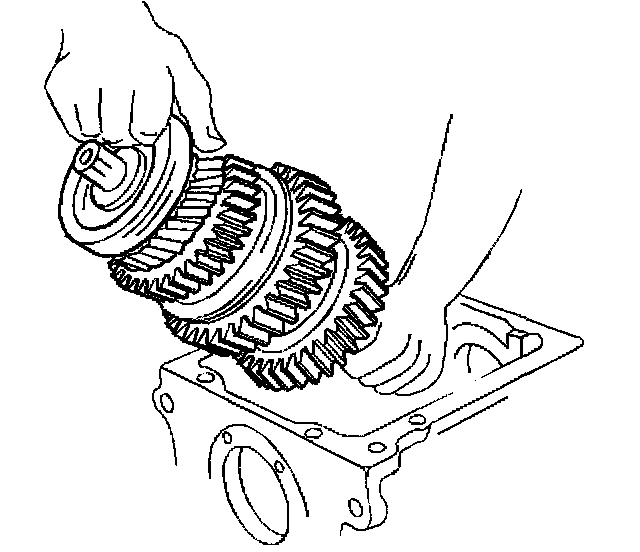 43. Remove the countershaft from the transmission case. Slide the countershaft rearward and lift the front of the countershaft and out of the case.