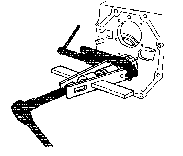 42. Remove the countershaft rear bearing using a suitable gear puller. Removing the countershaft rear bearing will allow the countershaft to be angled for removal.