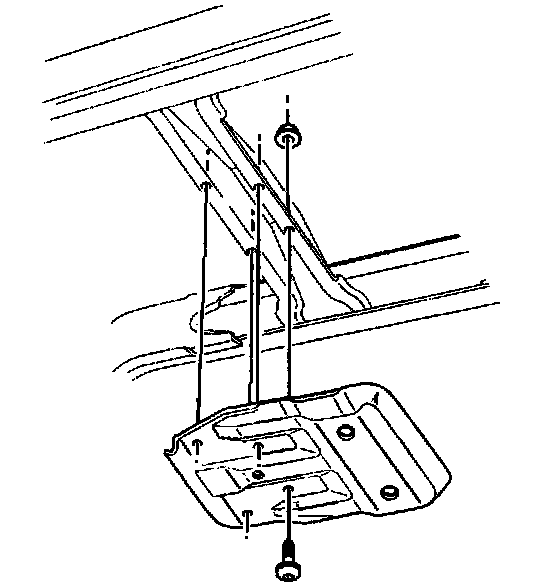 2. Remove the four bolts and the nuts securing the transfer case shield to the frame.