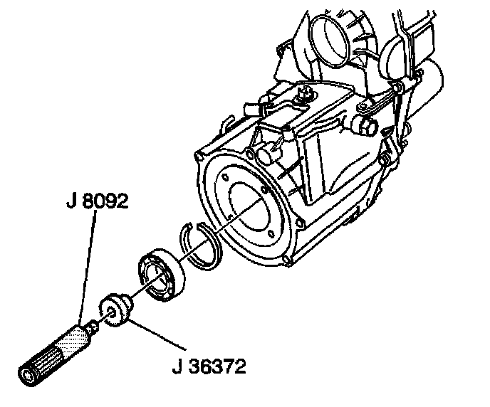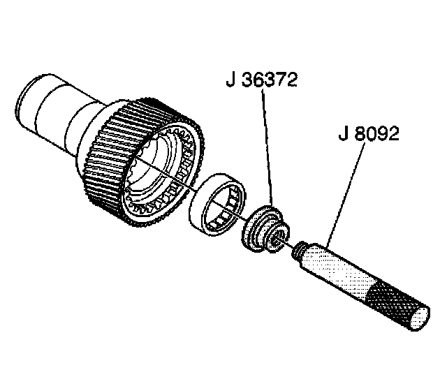 2. Using J 36372 and J 8092, install the front input shaft bearing.