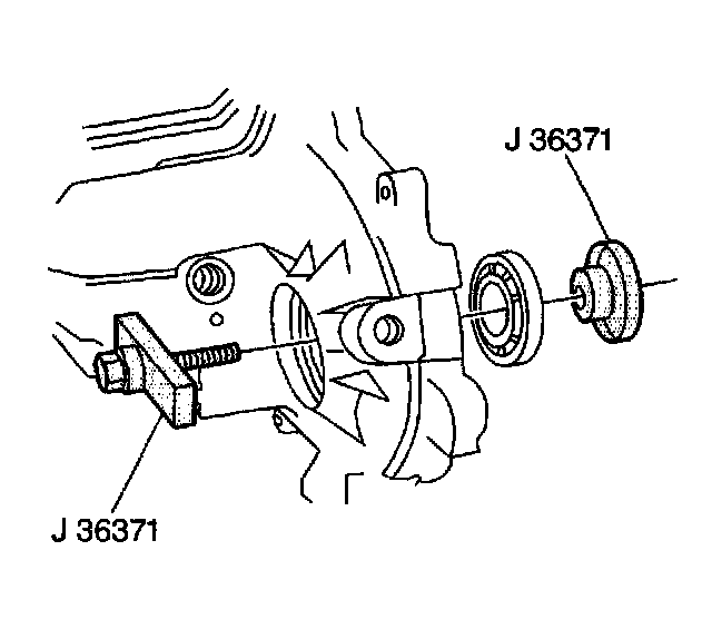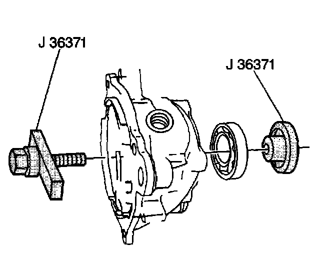 3. Using J 36371, install the output shaft rear bearing into the output shaft rear retainer housing.