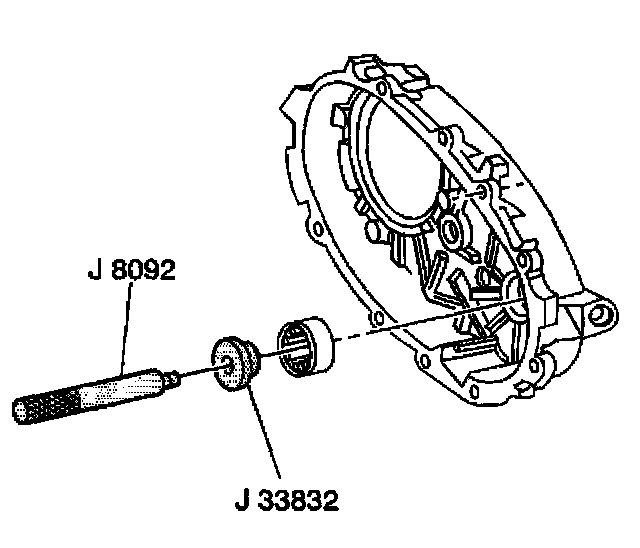 4. Using J 33832 and J 8092, install the front output shaft rear roller bearing.