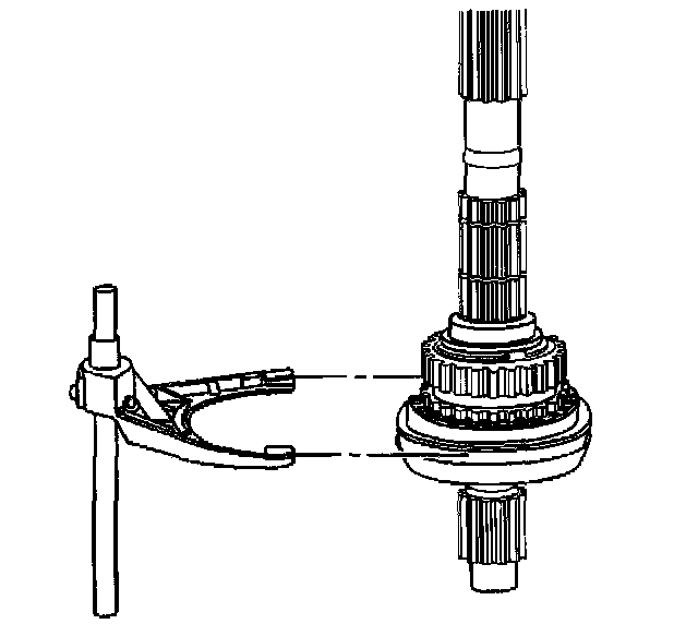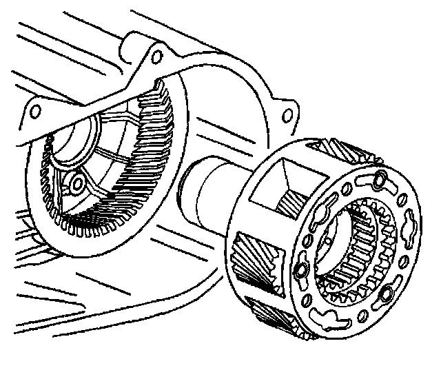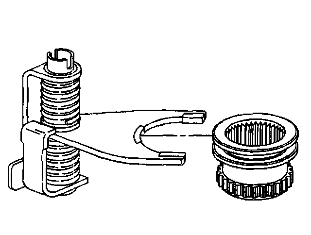 Important: During installation of the low range fork, sleeve, and hub assembly onto the planetary assembly, ensure the roller of the sleeve assembly is positioned onto the sector slot.