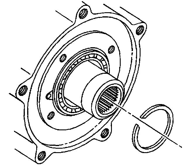 6. Install the retaining ring in order to secure the front output shaft front bearing.