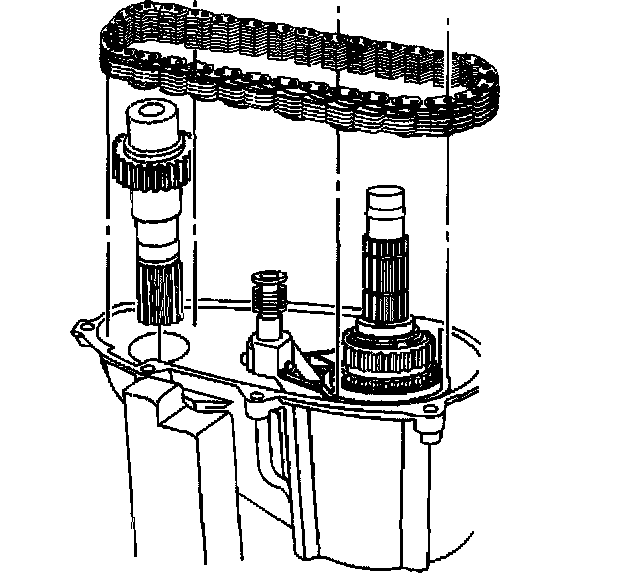 33. Install the front output shaft and drive chain into the front case and onto the main shaft.