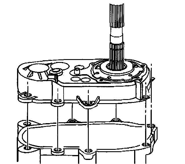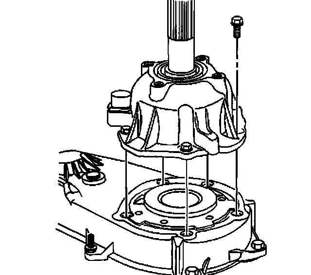 7. Remove the bolts securing the rear extension housing to the output bearing cover.