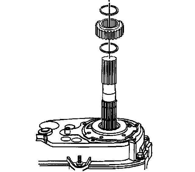 26. Remove the retaining ring, synchronizer stop ring, synchronizer/sleeve assembly and the drive sprocket.