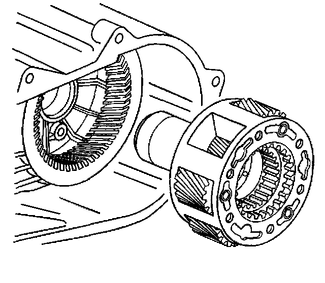 19. Remove the low range fork, sleeve, and hub assembly from the planetary assembly and case.