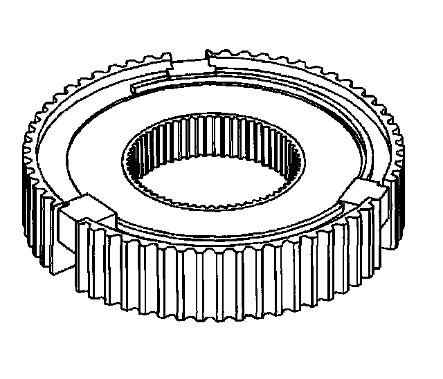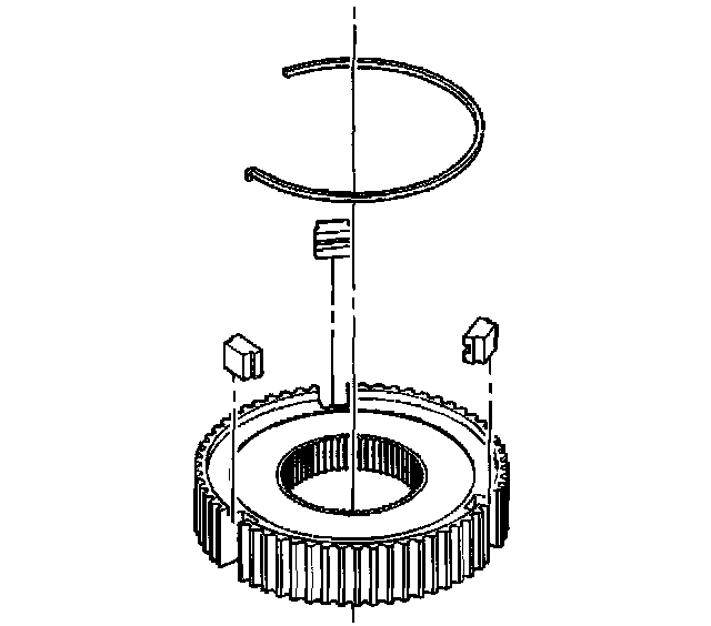 29. Turn the synchronizer over and remove the retaining ring securing the three struts to the synchronizer hub.