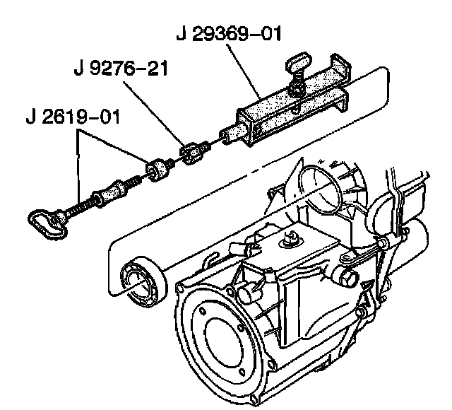 41. Using J 29369-1, J 9276-21 and J 2619-01, remove the rear output bearing from the rear extension.