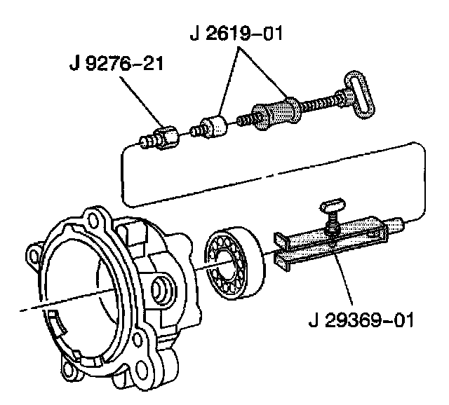 43. Using J 29369-1, J 9276-21 and J 2619-01, remove the front input bearing from the front case.