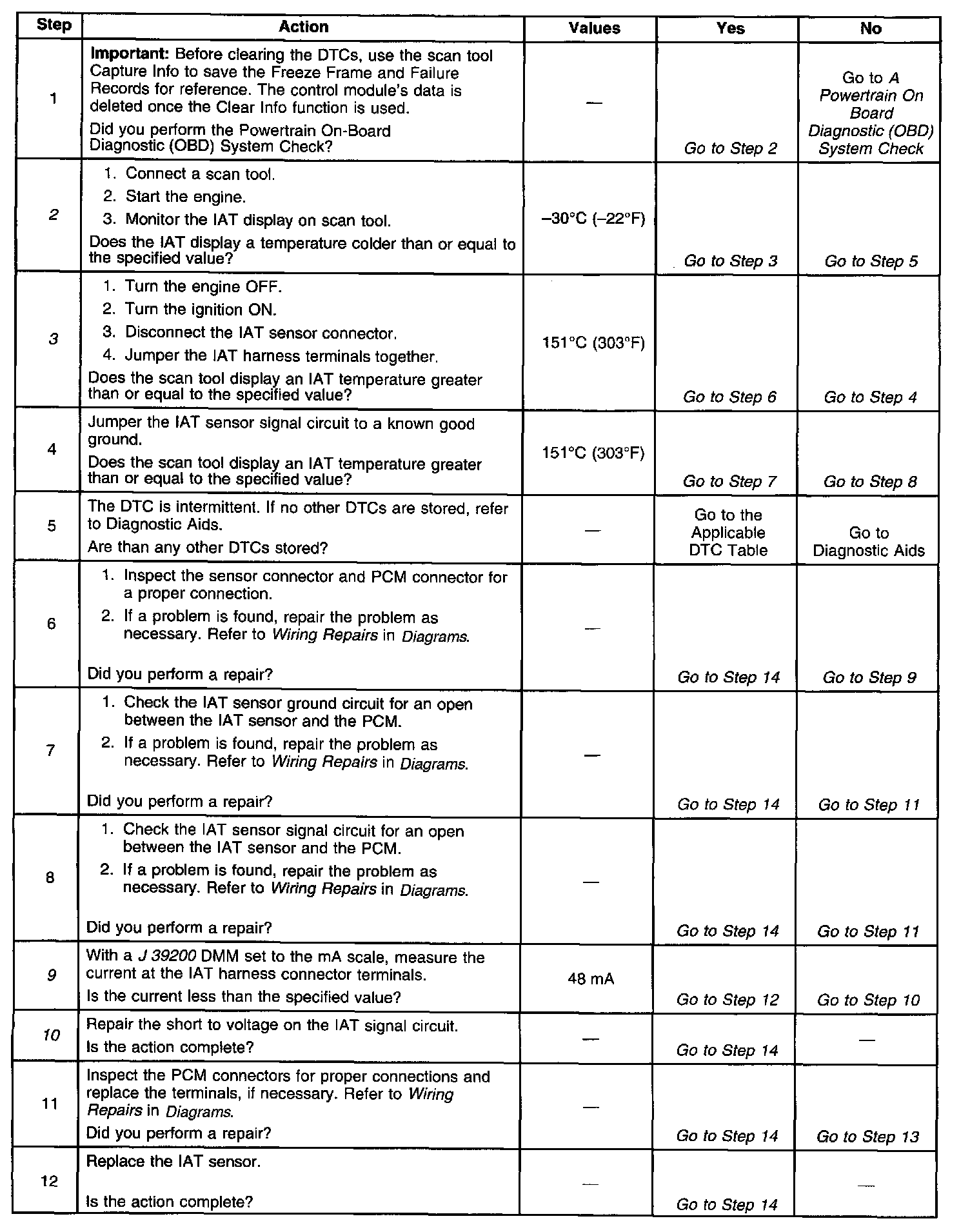 The scan tool displays intake air temperature in degrees centigrade. Check harness routing for a potential short to ground in the signal circuit. Refer to Symptoms. A skewed sensor could result in poor driveability complaints. Refer to Temperature vs Resistance. Symptom Related Diagnostic Procedures