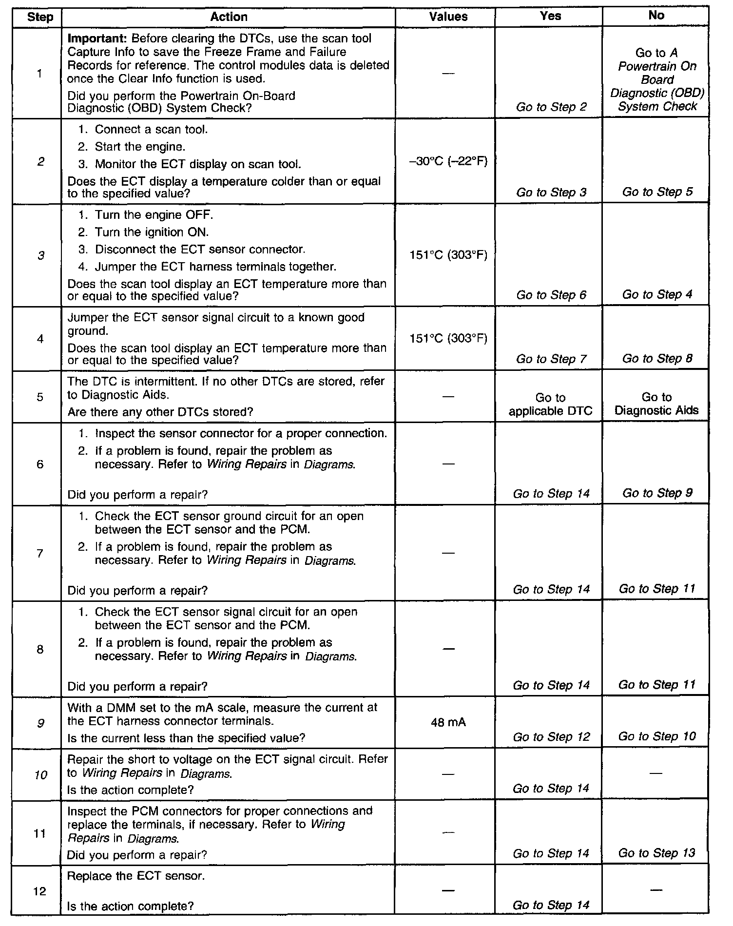 Check harness routing for a potential short to voltage. After engine is started, the ECT temperature should rise steady to about 85°C (185°F). A skewed sensor could result in poor driveability complaints. Refer to Temperature vs Resistance.