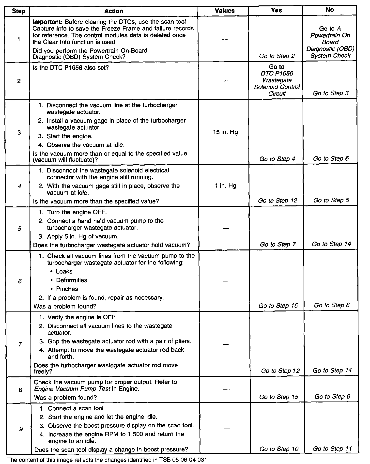 5. This step checks the turbocharger wastegate actuator for vacuum leaks. The actuator must hold vacuum.