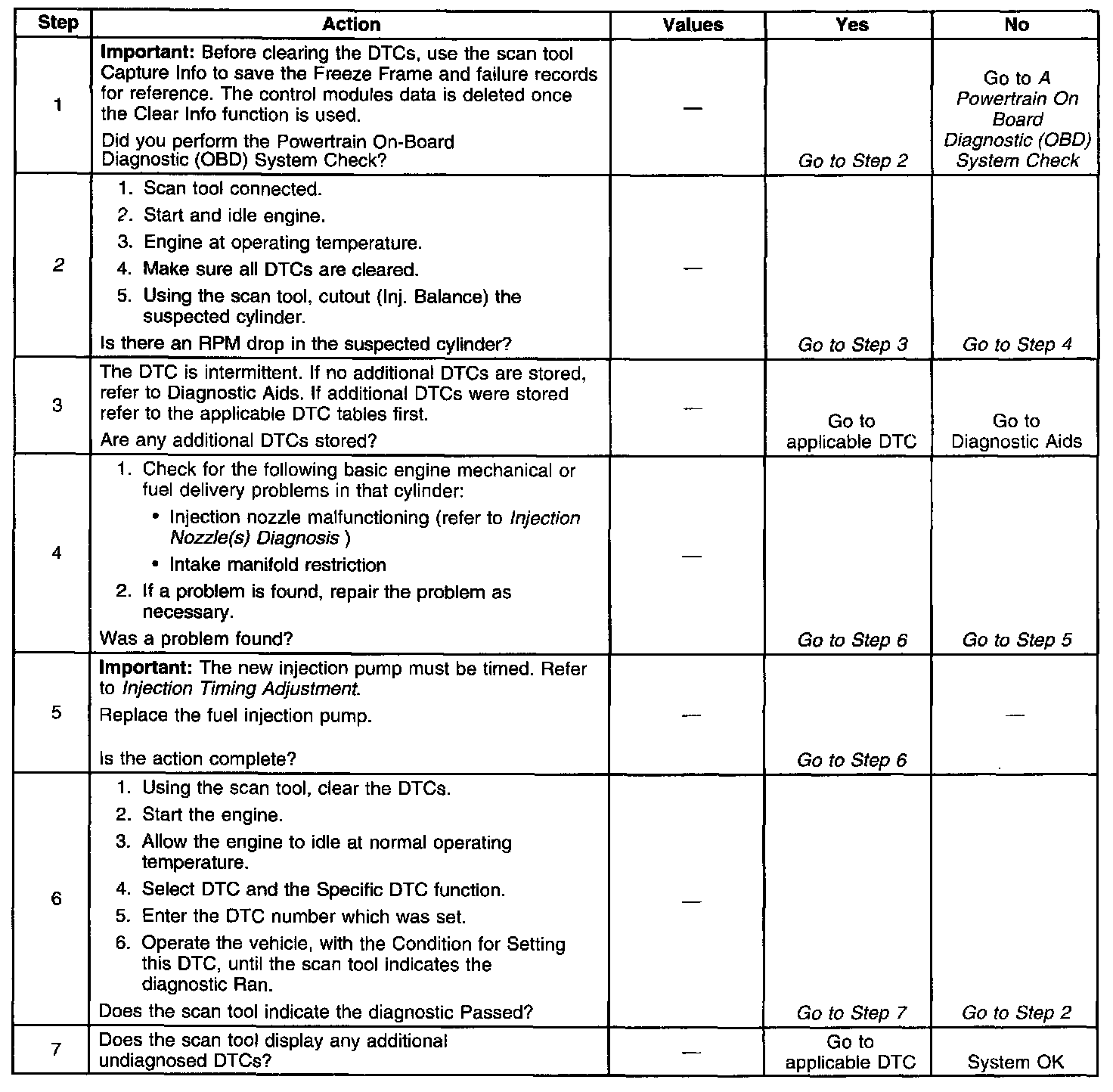 The PCM has the ability to increase and decrease the amount of fuel to each cylinder to provide smooth idle operation. If the PCM decides that the fuel reduction amount to a specific cylinder exceeds defined limits, this DTC will set. This DTC only monitors fuel reduction.