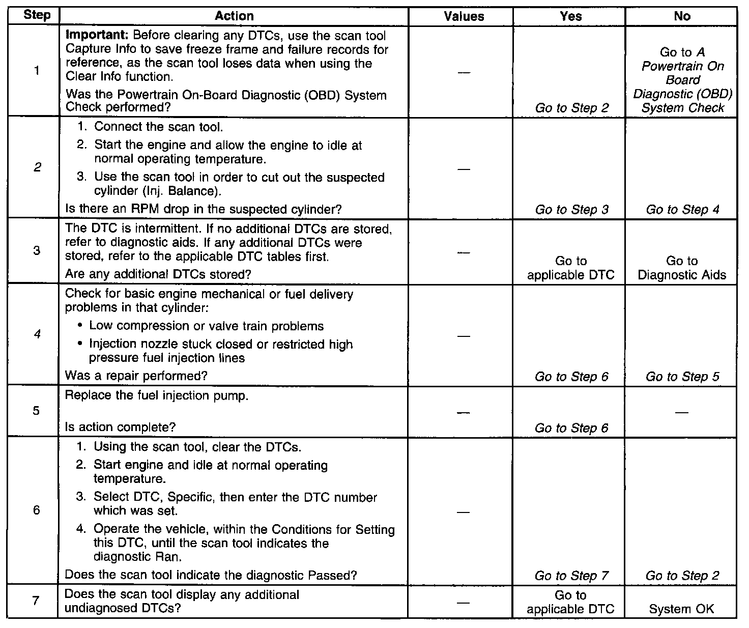 If an injection nozzle is suspected, it can be transferred to another cylinder to determine if the DTC follows the nozzle.