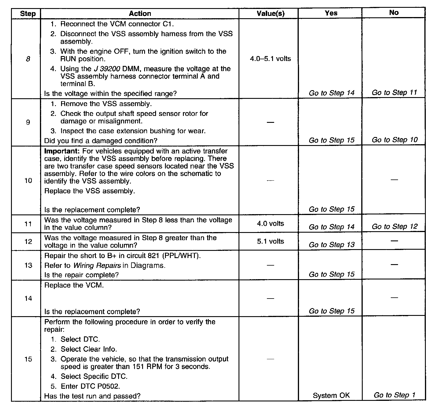 ^ The VCM stores DTC P0502 in VCM history during the second consecutive trip in which the Conditions for Setting the DTC are met.