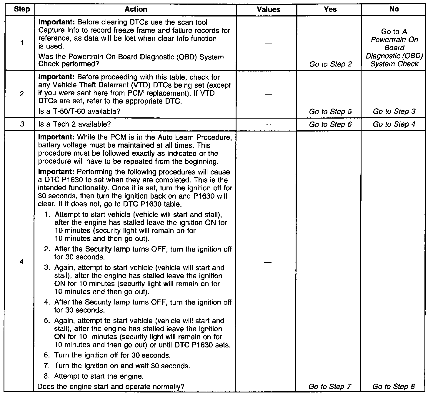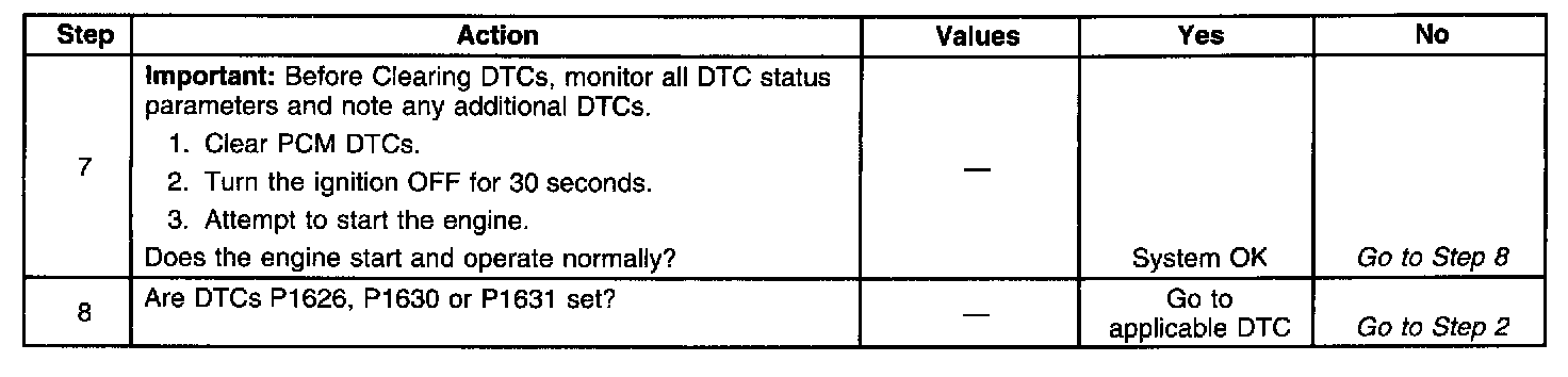 8. If DTC P1631 is set, indicates that the procedure was not followed correctly. The Re-learn procedure will have to be re-performed.