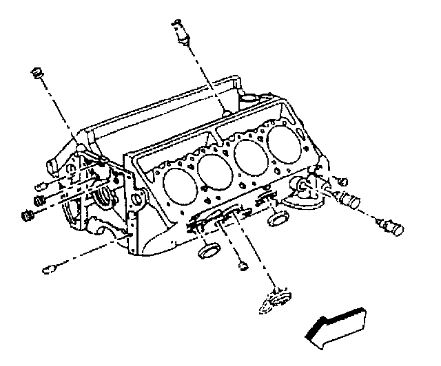 6. Remove the rear oil gallery plugs. An oil gallery plug is located inside the rear main bearing cap land.
