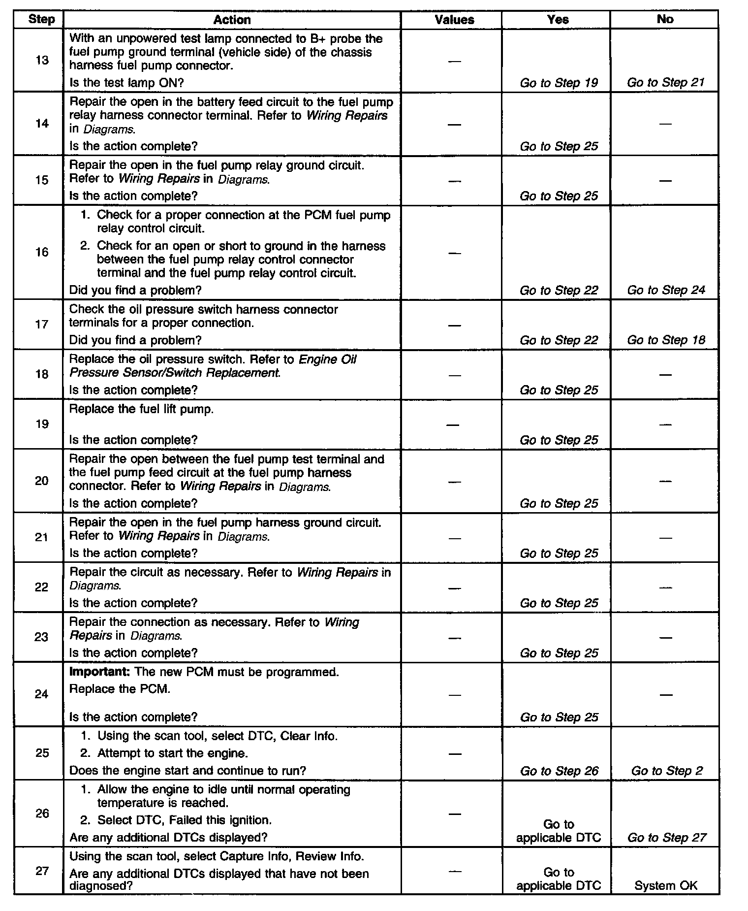 Fuel Pump Electrical Circuit Diagnosis