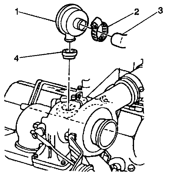 IMPORTANT: The crankcase depression regulator valve (1) is replaced as an assembly. Replace the hoses (3), pipes (3) and grommet (4) as required, if the inspection indicates any cracks or decay.