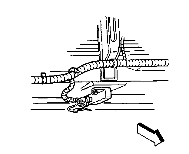 1. Install the inflatable restraint front end discriminating sensor to the front end lower tie surface and ensure that the arrow is pointing toward the front of the vehicle.