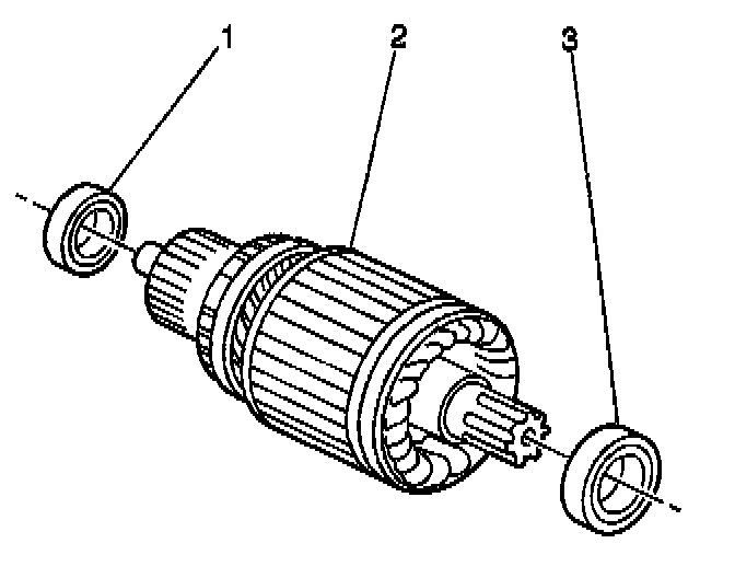 NOTE: Ball bearings that are removed from the armature must be replaced with new bearings. The removal procedure causes internal damage to the bearings.1. Remove the armature bearings (1, 3) and the armature (2) if replacing the armature and the bearings is necessary.