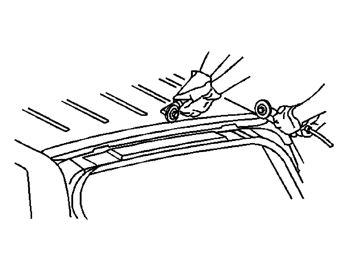 25. Apply two 10 mm (3/8 in) beads of adhesive along the entire prepared surface on the vehicle.