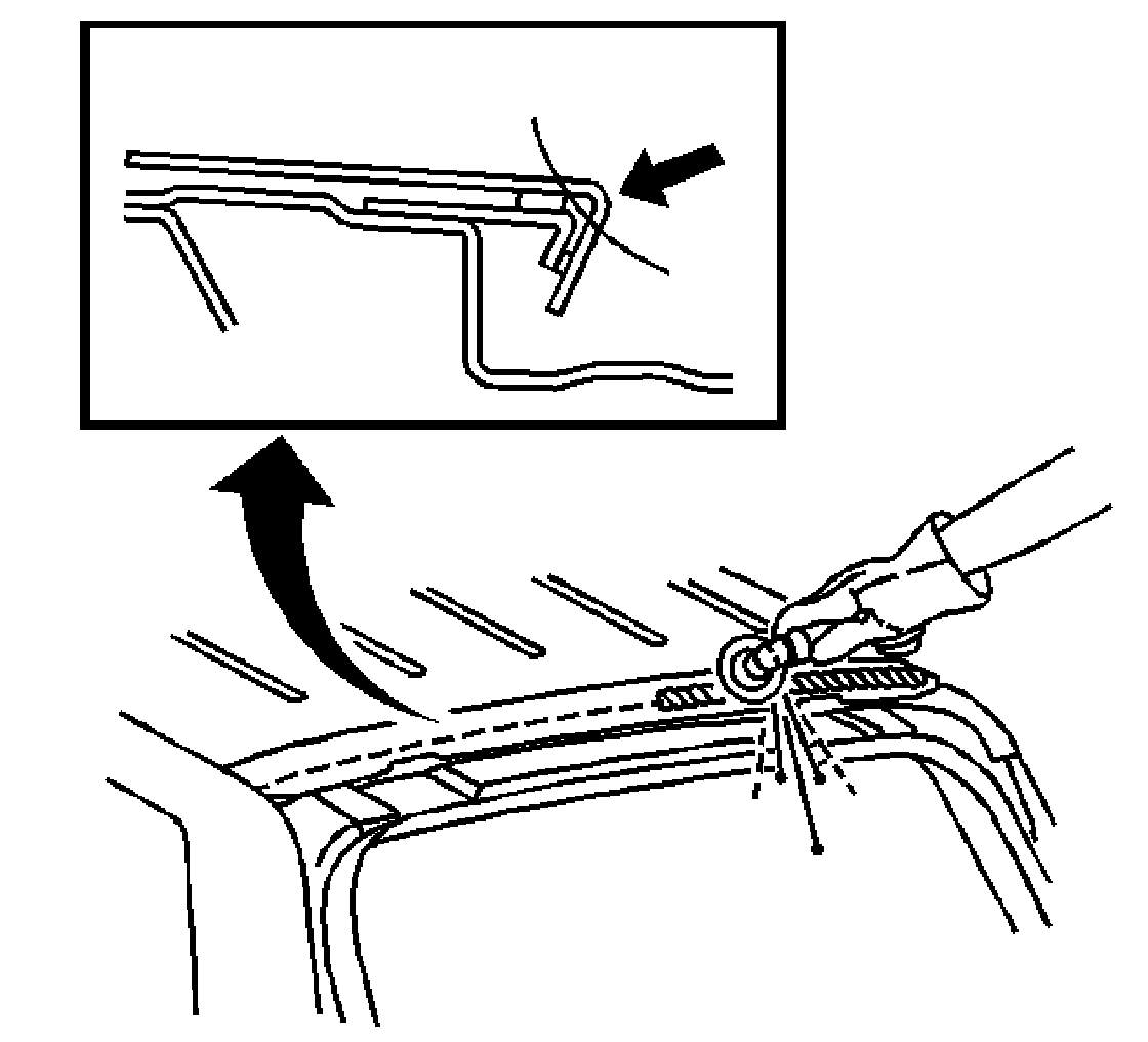 14. If necessary, use a chisel in order to separate the roof reinforcement from the mating surface.