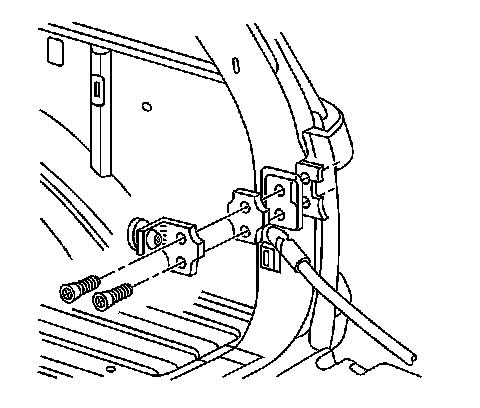 Important: Do not remove both endgate striker bolts at the same time in order to prevent the striker backing plate from falling into the body.