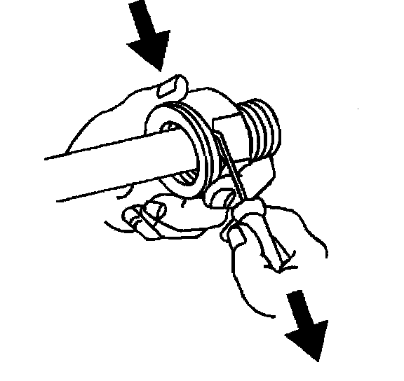 10. Rotate the retaining ring around the quick connector until the retaining ring is out of position and can be completely removed.