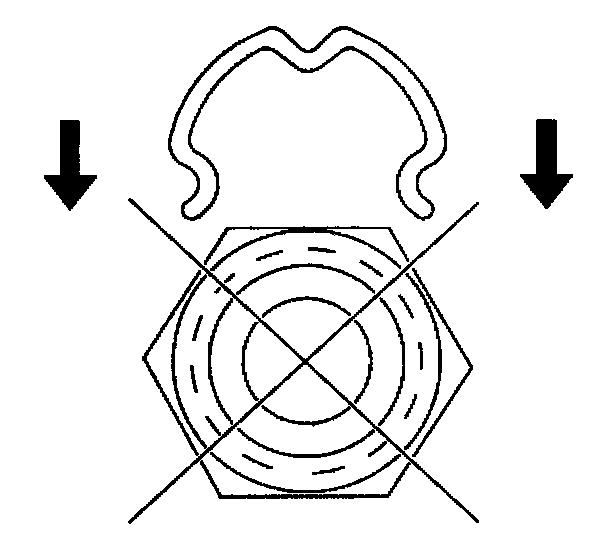 Do not install the new retaining ring onto the fitting by pushing the retaining ring down over the fitting.