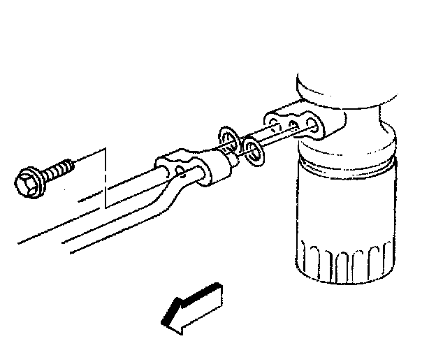 9. Install the bolt attaching the engine oil cooler lines to the engine oil filter adapter.