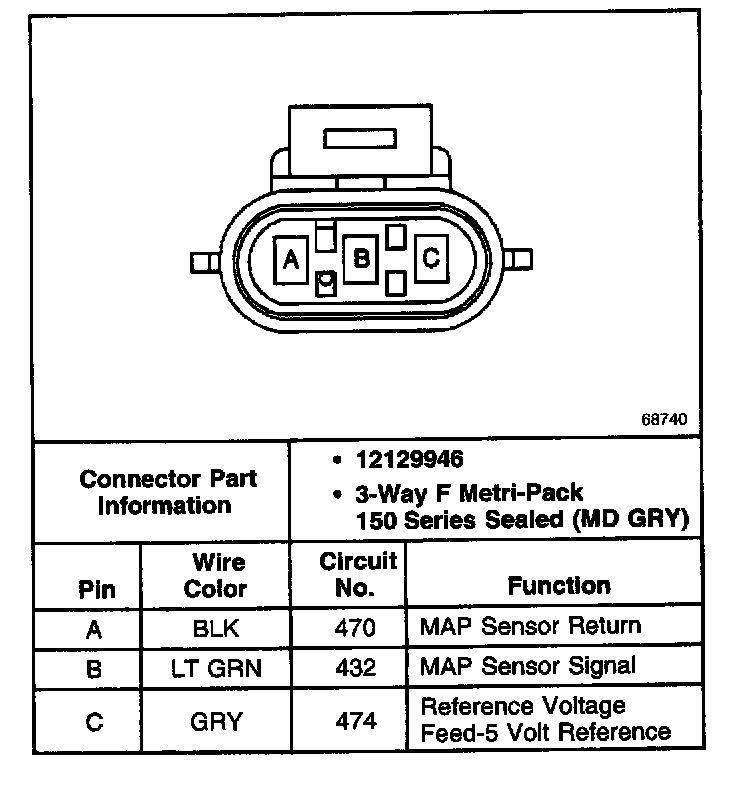 Manifold Absolute Pressure (MAP) Sensor Connector: