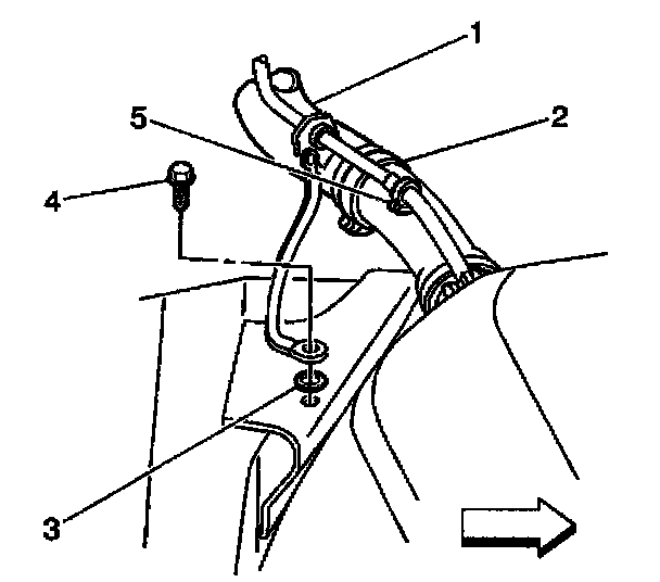 2. Connect the fill pipe ground strap to the frame with the bolt (4) and washer (3).