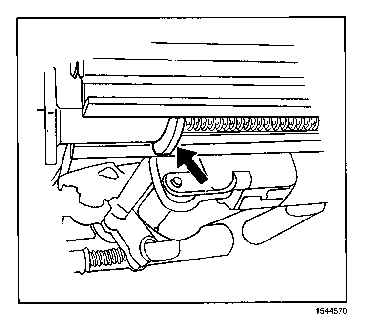 5. Insert a flat screwdriver between the upper rail and the transmission and GENTLY force it down.