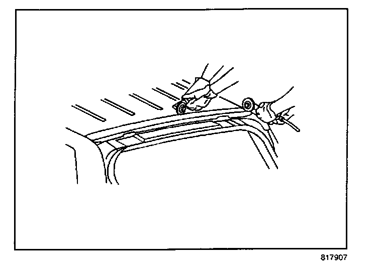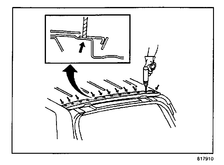 14. Apply two 10 mm (3/8 in) beads of adhesive along the entire prepared surface on the vehicle.