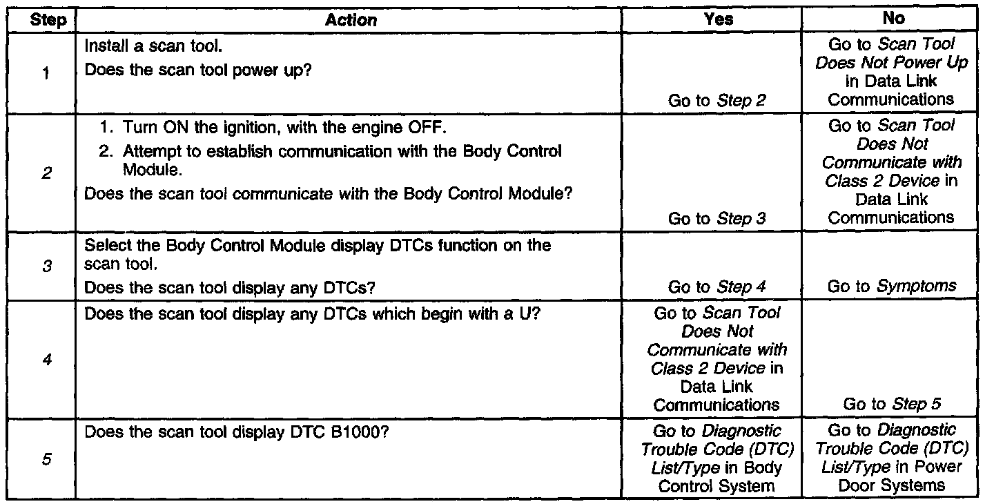 3. This step determines if a Body Control Module (BCM) DTC based diagnostic path or a symptom based diagnostic path are to be followed.