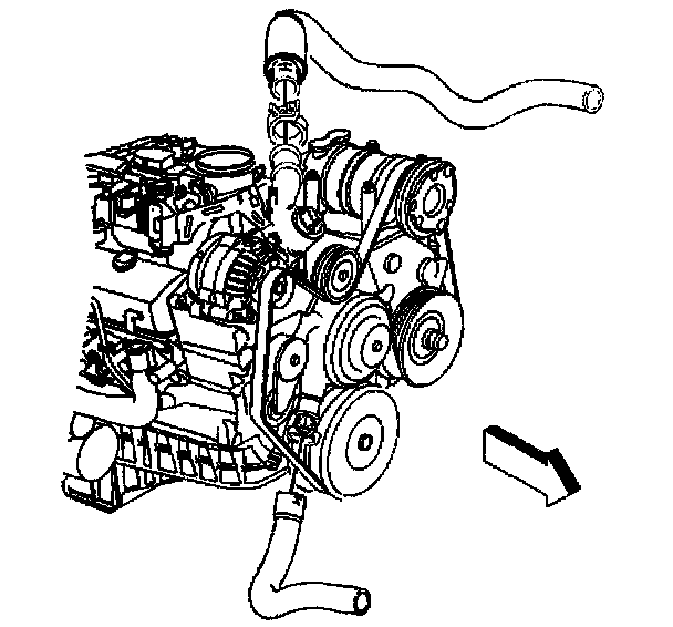 1. Remove the coolant from the radiator until the level is below the hoses being removed. Refer to Draining and Filling Cooling System.