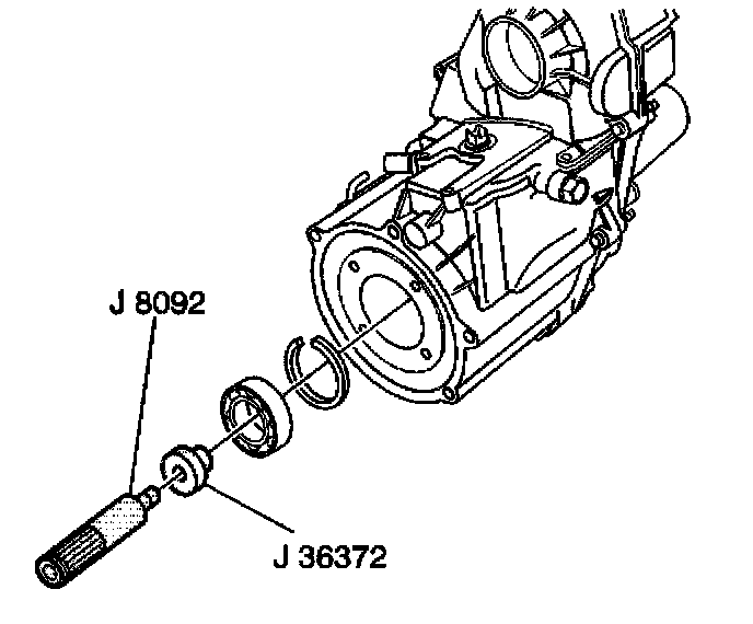 2. Using J 36372 and J 8092, install the front input shaft bearing.