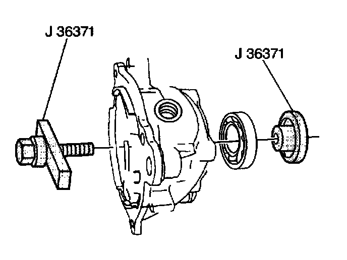 3. Using J 36371, install the output shaft rear bearing into the output shaft rear retainer housing.