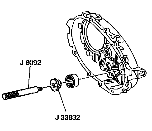 4. Using J 33832 and J 8092, install the front output shaft rear roller bearing.