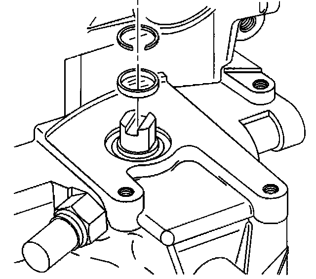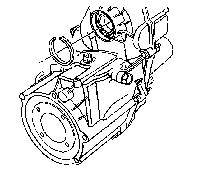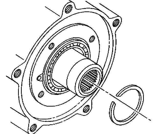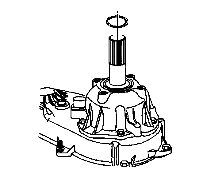 44. Install the speedometer tone wheel second retaining ring. Ensure the retaining ring is positioned into the groove in the rear output shaft.