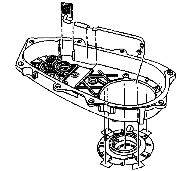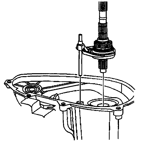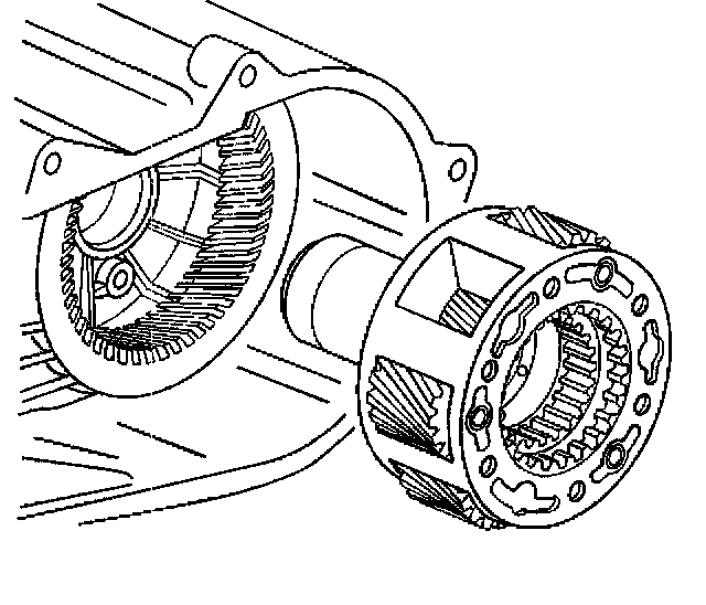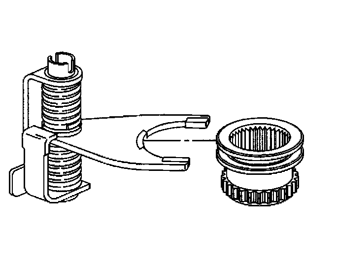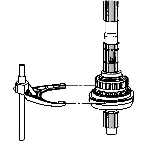 Important: During installation of the low range fork, sleeve, and hub assembly onto the planetary assembly, ensure the roller of the sleeve assembly is positioned onto the sector slot.