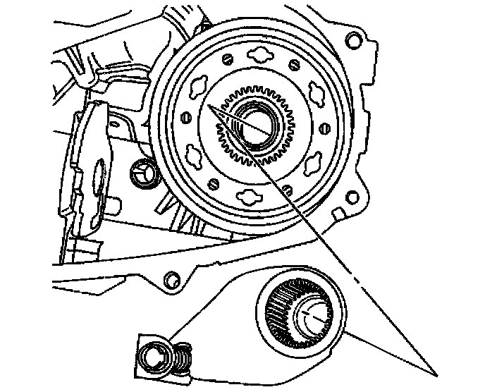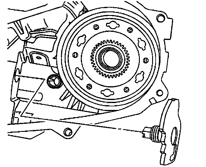 36. Apply a thin coat of RTV sealant GM P/N 12345739 or equivalent to the mating surface of the front case.