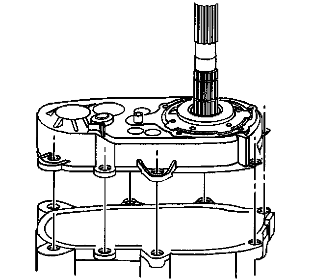 49. Secure the rear extension housing to the output bearing cover with four bolts.
