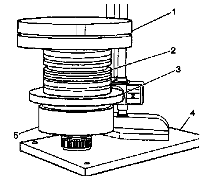 8. Position 100 pounds (45.4 Kilograms) of weight disks (1) and (2) on top of the flat disk (3).